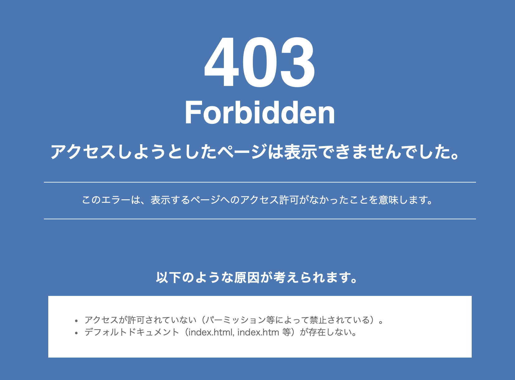 ・デフォルトドキュメント(index.html, index.htm 等)が存在しない。