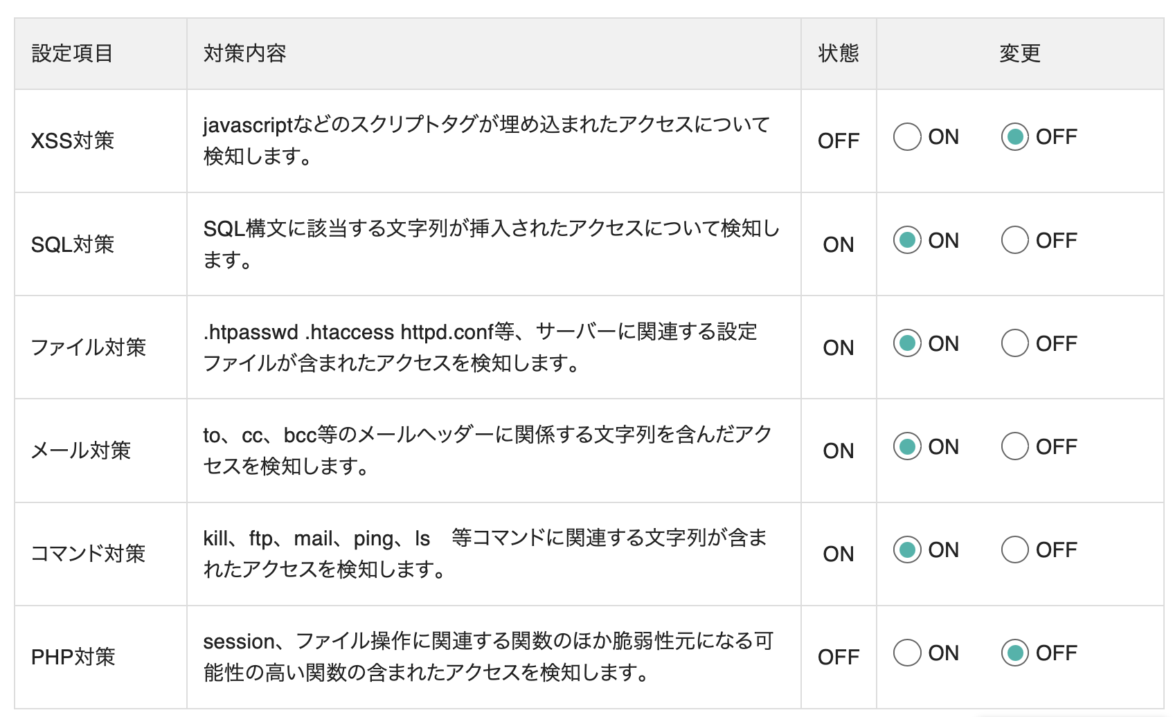 普段はWAFをONにしたままですが、エラーが出るページはだいたい把握してるので、